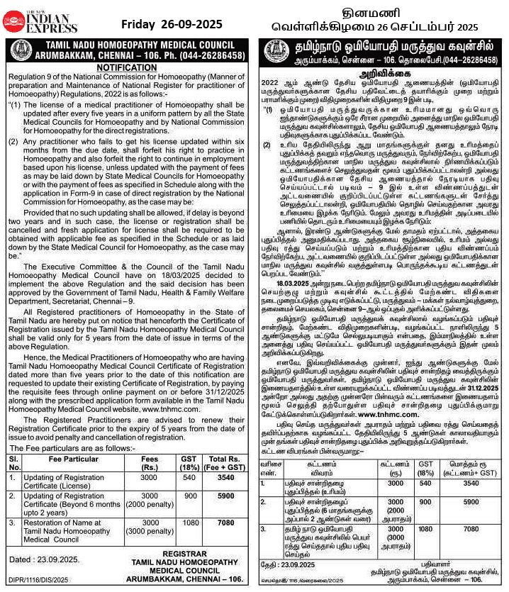 TAMILNADU HOMOEOPATHY MEDICAL COUNCIL